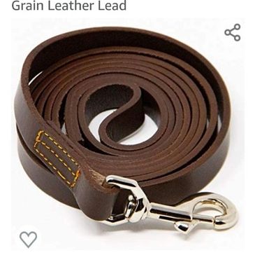 I make my own leashes, but a 6’ leather leash from Amazon or the Pet Store will work.