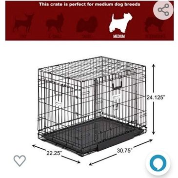 Go with the Medium or Large dog size. I use this one for the house and at dog shows. It has the best ventilation and is least claustrophobic. Not the best for travel, I prefer the plastic sides for crash safety.
