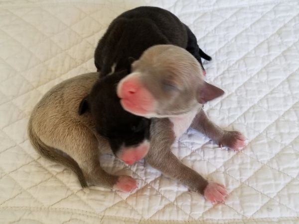 Every characteristic of a pure bred dog has a purpose. The Official AKC Breed Standard spells out those desired characteristics. If you are interested in showing your dog, you want to make sure you pick a dog that has the positive characteristics of the AKC Breed Standard. For the Italian Greyhound, the Breed Standard mentions a "narrow and long" head "tapering to the nose", and a "long, slender and gracefully arched" neck. The shoulder should be "long and sloping" and the body "short coupled, high at withers, back curved and drooping at hindquarters..." with a "slender and tapering" tail with a "curve end, long enough to reach the hock...". From your Italian Greyhound's tip of his nose to the tip of his tail, all those parts are important for the purpose he was bred to perform. And that purpose is: chasing prey and sleeping quietly on the laps of royalty. All the pups in this litter have the sleeping part down pat! To read more about the Italian Greyhound Breed Standard go to: https://www.akc.org/expert-advice/sports/purebred-dog-breed-standard/