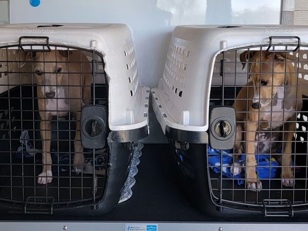 Happy 12 Weeks Old Lil Baby Puppies!!! Not so little any more. Pups got to visit their favorite vet for their second round of DHPP and their annual vaccine for Bordatella and Leptospirosis. Bexar is a drama queen and he let everyone in Comal County know he was not happy about getting stuck. The rest of the pack could care less about his drama or the shots. I used this morning drive to the vet as an opportunity to give the pups a trial run in their new road trip crates. They went with me to my office and then into San Antonio for a meeting with a client. They spent 2.5 hours in the car and did great! They really like riding by themselves in a crate. When the car bounces and shifts, the pups get stressed when one of their pack step on them. Separating them means they can control the environment they are in and it is less stressful. Less stress means less whining, less whining means I am less crazy!