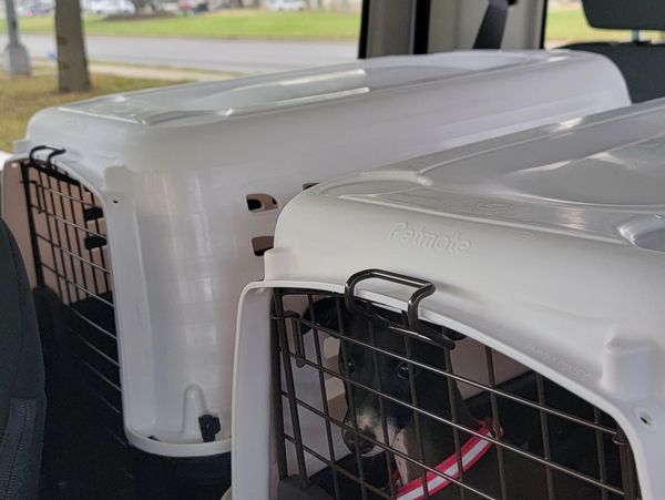 Puppies got their first dose of HeartGuard Plus. HeartGuard has Ivermectin in it to protect them from Heartworm, and the "Plus" part of the prescription is Pyrantel and Pyrantel protects them from Roundworm and Hookworms. All my dogs are on HeartGuard Plus to protect them from the horrors of Heartworm. It is an expensive part of our pet-care, but Heartworm is transmitted via mosquitoes, and we have those in Texas. I need to monitor their ingestion of the chew tab, each pup needs to get their own full dose. I separate each pup out from the pack and sit and feed cut up pieces of that chew-able tab so those little mouths can chew it without swallowing it whole! And I can make sure each pup eats the whole tab. I also want to monitor the pups to make sure they don't have problems with a new medication. This is another great reason to crate train you pup! There are times that your pup needs some quiet time, alone time, medical recuperation time or just supervised time in his own little space. Each pup has their own crate and they are up to about 10 minutes a day in their crate. In May we have a road trip, all the pups will need to be comfortable riding in the car for 3 hours. My goal is to get them to sleep for an hour in their crate by mid April.