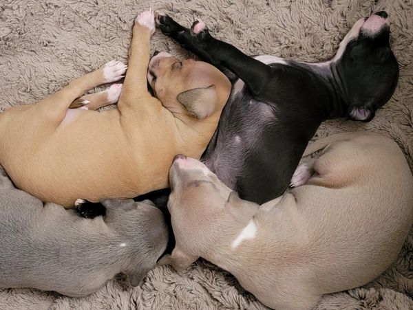 Day 35: 2/14/22 Victory! As a breeder I pay attention to the little things. Like when I introduced the pups to real food, I track their meal times so I can be awake for their poop time. Sleeping through this can be quite the **** show! Introducing real food can cause diarrhea or the opposite. We went 2+ days with no poop, so I introduced mashed pumpkin yesterday to encourage the track. Funny, pumpkin works for diarrhea and constipation! So my Valentine's Day wish was for the 4 pups to poop! All day we celebrated as one more pup would lay mud. All is good, pumpkin did the trick, we will keep an eye out for a repeat of this problem, and change up their food. Lesson learned: keep a can of organic mashed pumpkin for a rainy day.
