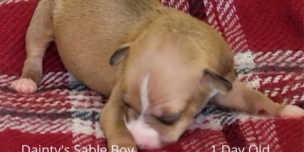15 Days Old: 1/25/22 Been holding the puppies for 30 seconds at a time, to get them use to being held. They feel my heartbeat and bob their noses around to find my scent. They know who I am and are comfortable sleeping in my arms. I don't want to stress mom or the pups, so I only do it for a short time. I am handling their feet and toes, touching their mouth, feeling their ears and rubbing their bellies. I want them to be use to a human touch and get them use to the grooming process. All of the pups have started to open their eyes, Fawn boy is straining to make them work. So cute!